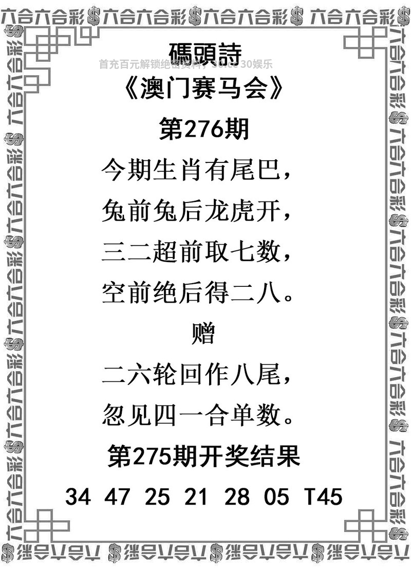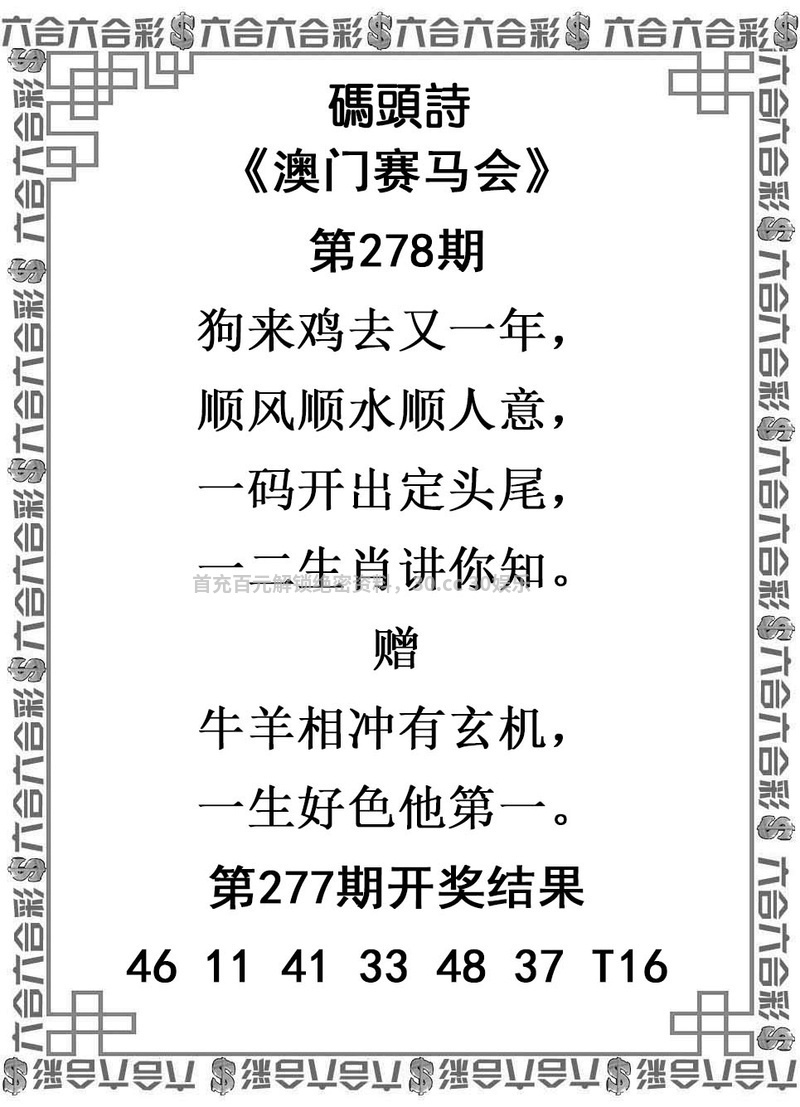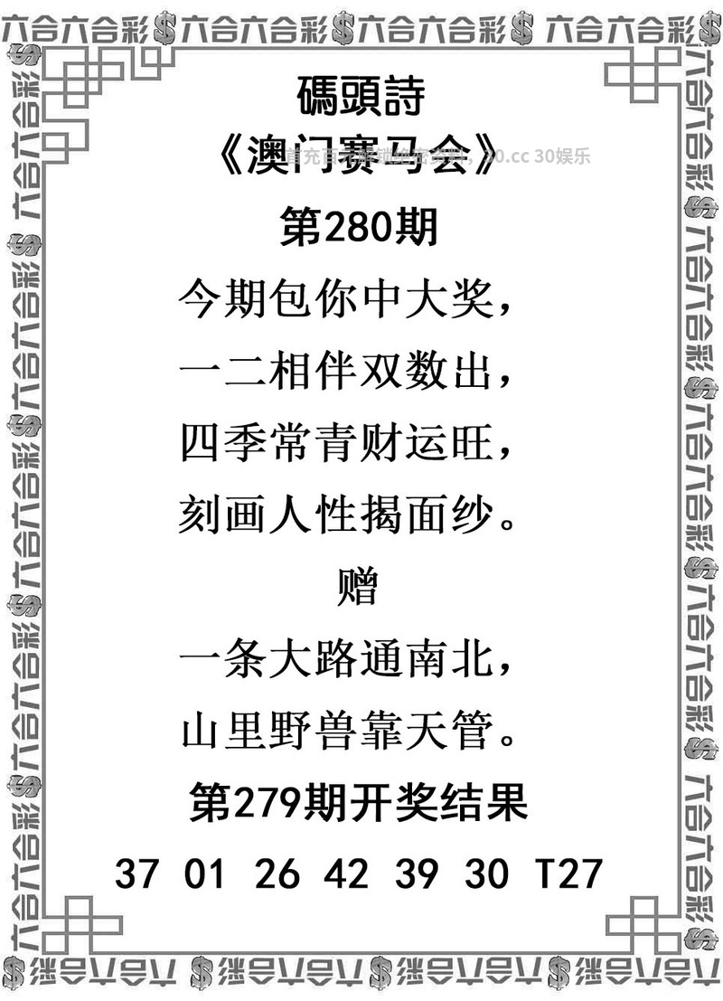 281期:澳门葡京/助理玄机诗/特码王中王/地下绝密料 |